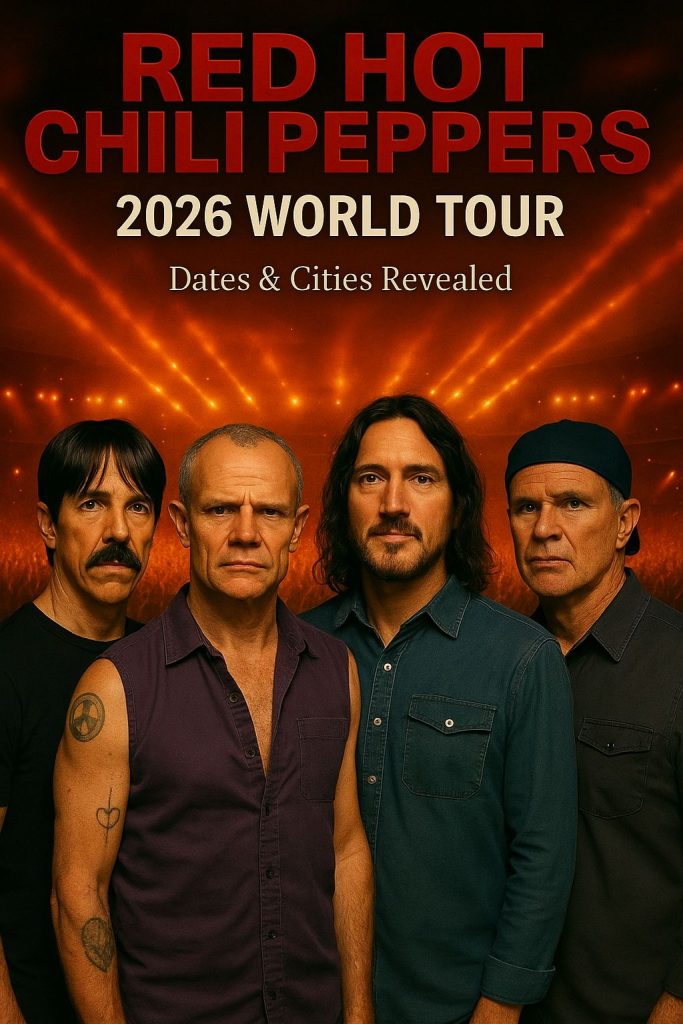 The legendary funk-rock icons Red Hot Chili Peppers have officially announced their 2026 World Tour, sending waves of excitement through fans across the globe. With a powerful new promotional image lighting up social media, the band looks more unified and intense than ever, promising a tour filled with energy, emotion, and timeless hits.